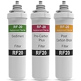 Compatible with Brondell Circle RC100 system. This is a compatible replacement filter and is not manufactured or endorsed by Brondell. Sediment Filter reduces particulate materials such as sand, rust, and fine particles from the water supply. Also acts as a pre-filter protecting and extending the life of the following filters Pre-Carbon Plus Filter significantly reduces harmful VOCs , chlorine, and soluble contaminants which can damage the RO Membrane filter Post Carbon Block Filter further reduces any lingering water contaminants such as chlorine and volatile organic compounds (VOCs), improving the overall taste and odor of the dispensed water Usable period: 6 months. Sediment Filter, Pre-Carbon Plus Filter, Post Carbon Block Filter, replacement cycle may be increased for areas with poor water quality or greater use. The period for the filter exchange is based on an average production of 2.6 gallons of drinking water per day