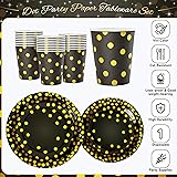 Black and Gold Dots Plates Set for 24 Guests,168PCS Disposable Dinnerware Party Supplies,Paper Plates Napkins Cups Gold Forks Knives Spoons for Birthday Graduation Retirement Anniversary Wedding Party