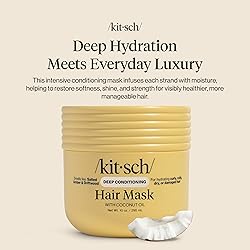 - INTENSE HYDRATION FOR DRY, FRIZZY HAIR – Treat your strands to a moisturizing hair mask that deeply nourishes from root to tip. This hair mask for dry hair uses rich coconut oil and medium-chain fatty acids to restore softness, shine, and manageability for all hair types. REPAIR & STRENGTHEN DAMAGED HAIR – A powerful deep conditioning hair mask and deep conditioning hair treatment that helps reduce breakage and protein loss. Perfect as a hair mask for damaged hair, it smooths and strengthens while sealing the cuticle to lock in moisture and reduce frizz. LUXURIOUS HAIR CARE FOR ALL TEXTURES – Whether you have curly, coily, straight, or color-treated hair, this deep conditioner delivers salon-level results at home. Use it as part of your weekly hair care routine for stronger, silkier, more resilient strands that look and feel healthy. VERSATILE HAIR TREATMENT FOR EVERYDAY USE – Works as an in-shower hair treatment or pre-wash mask to revive dull, lifeless hair. This buttery, creamy hair conditioner glides on easily, detangles effortlessly, and rinses clean to leave your hair smooth and shiny without buildup. ELEVATE YOUR SELF CARE ROUTINE – Make time for self care for women with this indulgent, coconut-infused formula. The Kitsch hair mask transforms dry, frizzy hair into soft, touchable strands while surrounding you in a lasting, luxurious fragrance — a must-have in your hair products collection.