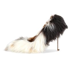 LISHAN Womens Fur Feather Pointed Toe Pull On Pumps Stilettos Two-Toned Shoes