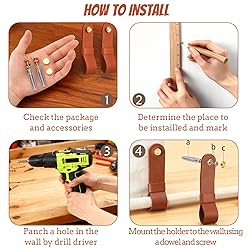Convenient Size: measuring 4.7 x 1 inches/ 12 x 2.5 cm, with a 1-inch wide leather, these curtain rod holders provide a nice fit for various curtain rods while maintaining a sleek profile. Premium Quality:These curtain rod holders are both soft and sturdy, providing exceptional resilience against breakage and distortion. The minimalist, boho design of our pole bracket will add a touch of elegance to any living space. Easy Installation: Curtain rod holders comes with all necessary screws for a safe, secure setup; Enjoy easy setup with our user friendly leather loop straps; Installation is a breeze, allowing you to quickly elevate your living space without needing extra help. Value Pack:The leather strap curtain rod holder makes a thoughtful, practical, and stylish present for any occasion. Curtain rod holders elegant curtain bracket is certain to impress. Surprise your loved ones with this unique gift! Space Saving Solution: Curtain rod holders maximize space with these leather wall hooks that sit flush against the wall, delivering a clean, streamlined look ideal for small rooms or minimalist settings.