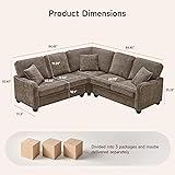 - ONBRILL L Shaped Couch, Small Sectional Sofa with Nailhead Trim Arms, Modern Chenille L Shape Sofa with 3 Throw Pillows, Comfy Convertible Corner Couch for Living Room, Apartment, Brown