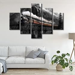 Rebotipy Train Posters Pictures 5 Panels Artwork for Walls Canvas Prints Steam Train Picture Posterf Wall Decor Mountain Posters and Printing Stretched and Framed Ready to Hang (60" Wx40 H)