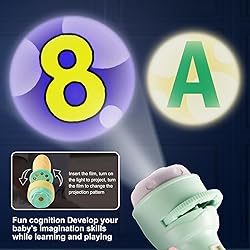 Thoughtful Idea: The green Toddler Flashlight makes a thoughtful and unique for birthdays or special occasions, delighting both parents and children with its creative and interactive features. Imaginative Storytelling: The Toddler Flashlight with 80 pattern slides and 10 projection cards transforms bedtime into an enchanting storytelling session, captivating young minds with colorful visuals and imaginative tale. Reliable and Safe Design: Crafted with child-friendly materials, this flashlight projector is reliable and safe for everyday use, ensuring it withstands the playful nature of young children. Versatile Entertainment: Perfect for various occasions, including bedtime stories, birthday parties, and family gatherings, this toddler flashlight adds a magical touch to any event, keeping kids entertained for hours. Interactive Learning: This kids' story projector encourages interactive learning by projecting engaging patterns and images that spark curiosity and creativity, making it an ideal educational tool for toddlers.