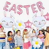 Easter Party Decorations: The set features of pink Easter banner balloons and bunny balloon, these with a classic Easter theme pattern and bright, vibrant colors, it creates a cheerful atmosphere Easter Party Supplies: 1pcs 16 inch Easter balloon letters, 2pcs Easter bunny balloons, 2pcs daisy balloons, 2pcs star balloons Premium Quality:Made from durable material, these Easter foil balloons are resistant to popping and maintain their shape throughout the event Easy to Use: You can easily blow up the Easter mylar balloons with the included straw. They have valves to keep air in, and ribbons make it easy to hang them up anywhere Versatile decor: Ideal for Easter party, bunny birthday, Easter egg party, use it as a background and photo wall to create a romantic atmosphere for you