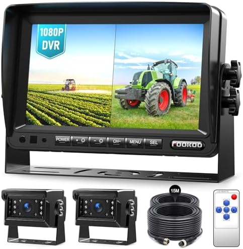 Fookoo 7" AHD 1080P Wired Backup Dual Camera System, Waterproof Vibration-Proof Rear View Cameras IR Night Vision for Tractor/Excavator/Harvester/Bulldozer/Crop Sprayer/Agricultural Equipment - DY702