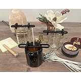 Easy to use all-in-one wick centering and holding tools to improve your DIY candle making process Includes: 1 magnetic wick placing tool, 8 centering wick holders, 1 wick height trimming tool, 60 cotton wicks (6in length), 60 wick stickers Adjustable length to fit most candle jars / containers up to 4 inches wide. Made of sustainably produced PLA bioplastic in the USA