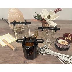 - Easy to use candle making kit with tools to help place and center your candles. Improve your DIY candle making process with 3 essential tools. First use our magnetic wick placing tool to stick your cotton wicks at the bottom of the jar with ease. Then use our wick holding tool to keep the wicks taught and centered while the candle wax cools. Finally use the wick height trimmer to easy trim off excess wick and get them to the same height every time. Also included are a set of 60 cotton wicks and 60 wick stickers to give you a head start on your improved candle making experience.