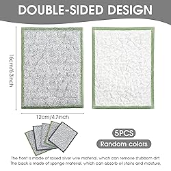 Advanced Cleaning Fibers - Integrates silver thread elements with soft veil base material that provides exceptional cleaning power for removing challenging kitchen messes and greasy residues from various surfaces Non-Damaging Cleaning Action - Formulated with gentle yet effective cleaning texture that eliminates stubborn dirt and grime without creating scratches or marks on sensitive surfaces and kitchen equipment Optimal Size Specifications - Cut to 6.3x4.7 inches for versatile cleaning utility and convenient handling, delivering efficient cleaning performance while occupying minimal storage space in kitchen drawers Dual-Layer Material - Constructed with two-layer veil and silver thread composition that enhances cleaning performance and cloth durability while minimizing oil absorption characteristics Complete Five-Piece Set - Provides five reusable wire dishcloths in silver color, ensuring adequate supply for different cleaning tasks and regular replacement needs in busy kitchen environments