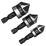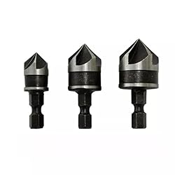 - 3Pc countersunk drill bit with five blade chamfer at 90 ° Feature: *1/4 "quick change hexagonal handle. *Suitable for wood and soft metal. *This countersunk kit involves drilling 90 degree holes in wood and soft metal during the preparation of countersunk screws and fasteners. *The set comes in commonly used sizes, including 12mm, 16mm, and 19mm, all equipped with 14 hexagonal and circular quick change handles for easy replacement with 1/4 inch quick change chucks. Specifications: Product Name: countersunk drill bit Material: Carbon Steel Color: Black Size: (optional) 12/16/19mm Knife handle: (optional) hexagonal, 1/4 round Quantity: 3 pieces Package contents: 3 * countersunk drill bit Origin: Chinese Mainland Type: Rotary drill bit Length: 42-43-46mm