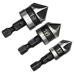 3Pc 12/16/19mm countersunk drill bit with five edges chamfered 90 °, suitable for woodworking tools for wood and soft metals