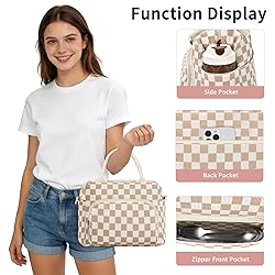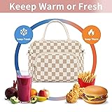 GASSDA Lunch Box for Women Insulated Lunch Bag Women Adult Cute Lunch Bags Reusable Lunchbox Cooler Tote Bag for Work Picnic (Beige-Brown Plaid)