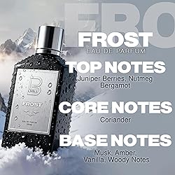 LONG-LASTING COOL FRESHNESS - Crisp juniper and bergamot ignite an energetic opening, delivering a refreshing masculine vibe similar to men’s eau de parfum favorites for confident everyday wear. CLEAN, AIRY SIGNATURE SCENT - A smooth balance of coriander, amber, and musk creates a refined vibe similar to men’s eau de parfum favorites, perfect for those who appreciate a fresh, sophisticated allure. ELEVATED DAILY CONFIDENCE - A fresh, masculine tone supports every moment, enhancing your presence with a clear, composed aroma that fits seamlessly into any routine without overpowering. COOL, MODERN VIBE - Frost’s crisp profile delivers a refreshing aroma crafted for men who appreciate clean scent transitions, making it a standout addition to any collection of cool men’s essentials. PERFECT GIFT FOR HIM - A refined fragrance choice ideal for regalos para hombres or thoughtful men’s gifts, offering a clean, modern scent that men appreciate for its freshness and depth.