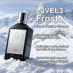 - Frost Eau de Parfum Cologne by L3VEL3 is crafted for men who appreciate a clean and modern scent profile built on clarity, balance, and long lasting presence. This mens parfum's fragrance opens with a cool blend of juniper berries, nutmeg, and bergamot, creating an airy first impression that feels crisp and refreshing from the moment it touches the skin. As the initial notes settle, Frost reveals a gentle heart of coriander, adding a smooth aromatic lift that supports the transition from bright freshness to warm depth. The dry down unfolds into a refined base of musk, amber, vanilla, and soft woods, forming a comforting layer that stays steady throughout the day without overwhelming the senses. Frost is designed for men who want a fragrance that fits naturally into their daily routine while still offering a sense of distinction. Its balanced structure makes it suitable for work, evenings out, or quiet moments of personal style. The scent develops gradually, allowing each note to emerge without sharp jumps or sudden shifts, delivering a composed and pleasant experience from start to finish. This mens eu de parfum is part of the L3VEL3 fragrance collection, known for smooth blends and approachable character. Frost stands out as the cool and calm option in the lineup, offering a fresh start that evolves into a warm finish. It suits men who appreciate subtle refinement, making it a meaningful choice for gifting, whether you are looking for regalos para hombres, mens gifts, or thoughtful items for young men gifts. Its clean scent profile also appeals to men who prefer fragrances that present confidence without unnecessary intensity. Frost can be added to personal grooming routines as a dependable daily scent. Its smooth composition makes it suitable for men who enjoy understated elegance rather than attention seeking aromas. The blend of airy citrus, aromatic spice, and warm woods allows the fragrance to match different settings while keeping a recognizable signature.