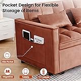 Trygoal Pull Out Couch, Velvet Fabric Loveseat Sleeper Couch, 3 in 1 Corduroy Futon Sofa Bed with Side Pockets, Sleeper Sofa Bed with Adjustable Backrest for Living Room, Camel