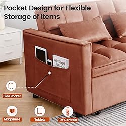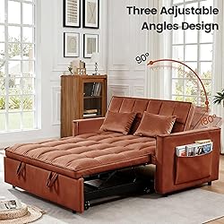 - Trygoal Pull Out Couch, Queen Size Convertible Loveseat Sleeper, 3 in 1 Corduroy Futon Sofa Bed with Side Pockets, Sleeper Sofa Bed with Adjustable Backrest for Living Room, Camel