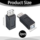 【Universal Compatibility】This USB 2.0 A female to B female adapter supports connection between devices with different USB ports, making it compatible with various office and electronic equipment. The USB type A to type B converter works seamlessly with printers, scanners, fax machines, hard drives, and digital cameras. 【Dual Function Performance】This USB adapter provides both efficient data transfer and reliable charging functionality in one compact device. Supporting data transfer speeds up to 480Mbps and charging current up to 2A, this USB type A to B adapter handles file transfers between computers and peripherals while simultaneously providing power to connected devices. 【Sturdy Construction】Manufactured from high-quality ABS plastic and metal components, this USB 2.0 adapter offers durability and long-lasting performance. The robust construction prevents deformation and breakage during regular use, while the precise engineering ensures secure connections between devices. This USB A to B converter maintains signal integrity through quality materials that withstand repeated plugging and unplugging cycles, providing reliable performance over extended periods. 【Easy Installation】Featuring true plug-and-play operation, this USB adapter requires no software installation or external power supply for immediate use. Simply connect the USB type A female to type B female adapter between your devices and begin transferring data or charging immediately. 【Package Includes】The package includes 2 pieces of USB 2.0 A female to B female adapter converters in compact black design, providing multiple connectivity solutions for various scenarios. Each adapter measures 31x17mm, making them easy to store and transport.