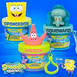 - Are you ready, kids? Get your hands on the SpongeBob SquarePants Mini Butter SLIMYGLOOP Bundle Pack — a super-satisfying trio of buttery slimes straight from Bikini Bottom! This bundle includes three 1.5-ounce jars of ultra-creamy, velvety slime that stretches smoother than Squidward’s clarinet solos (well, almost). Dive into SpongeBob’s blue pineapple-scented slime with shimmery yellow glitter, Patrick’s pink bubblegum-scented slime that’s as sweet as a jellyfishing day, and Squidward’s teal cotton candy-scented slime — because even he deserves a little joy. Each slime jar comes with a collectible character topper and clip, so your favorite undersea friends can tag along wherever you go. It’s stretchy, it’s soft, it’s satisfyingly squishable — and it smells amazing! Whether you’re stress-relieving, slime-swirling, or just soaking up the fun, this set is pure Bikini Bottom bliss. Perfect for SpongeBob fans ages 3 and up!