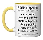 Show off your sense of humor with this funny public defender design. Perfect for lawyers, legal professionals, and anyone who fights for justice with wit and sarcasm. Great for courtrooms, law offices, or casual gatherings. Ideal for men and women in the legal field, including attorneys, paralegals, law students, and public defenders. A great gift for graduations, holidays, or celebrations of legal achievements. Perfect for legal enthusiasts who appreciate humor. 11-ounce ceramic mug is dishwasher and microwave-safe, lead and BPA free Features glossy finish with accent colors on interior, handle, and rim of two-tone designs