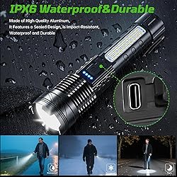 - Illuminate Your World with the Ultimate Rechargeable LED Flashlight Discover the power and versatility of our Rechargeable LED Flashlight, engineered to deliver super bright, high lumens illumination for all your lighting needs. Whether you're camping in the wilderness, preparing for a home emergency, or tackling tactical missions, this handheld flashlight is your go-to source of reliable light. With a robust design, advanced features, and user-friendly functionality, it’s the perfect lighting solution for indoor and outdoor enthusiasts. Key Features & Selling Points: Ultra-Bright LED & High Lumens Output: Equipped with an upgraded LED chip, this flashlight produces an astounding 9000 lumens, making it one of the brightest flashlights on the market. It offers exceptional visibility as a spotlight for long-distance observation and a floodlight for wide-area illumination, ideal for camping, hiking, and emergency situations. 7 Lighting Modes & Zoomable Focus: Tailor your lighting to any scenario with 7 versatile modes: main light (High/Medium/Low/Strobe) and COB side light (High/Low/Red/Red-Blue emergency mode). The zoomable, adjustable head allows quick switching between spotlight and floodlight functions, enhancing its usability for tactical, security, and outdoor activities. Fast USB-C Recharging & Battery Power Disp "lay: Say goodbye to battery hassles with the built-in rechargeable battery that supports USB-C charging. Fully charge in just 3-4 hours using power banks, car chargers, or laptops. The integrated power indicator (25%, 50%, 75%, 100%) lets you monitor battery levels effortlessly, ensuring readiness for emergencies and power outages. IPX6 Waterproof & Rugged Build: Crafted with an aluminum alloy head and ABS body, this IPX6 waterproof flashlight is built to endure tough conditions. It’s shockproof, dustproof, and anti-slip, making it suitable for use in rain, snow, or extreme outdoor environments. Its durable design ensures long-lasting performance for camping, hiking, and tactical use. Compact, Portable & Multi-Functional: Designed for convenience, this small flashlight includes a pocket clip and lanyard for easy attachment to belts, backpacks, or pockets. It’s lightweight yet powerful, making it an essential tool for travelers, hikers, campers, and home users. Its compact size doesn’t compromise on brightness or functionality. Ideal for Multiple Scenarios & 2-Pack Value: This 6-pack of flashlights covers a wide range of uses: home emergencies, camping trips, hiking adventures, tactical operations, and outdoor work. Each unit is rechargeable, battery-powered, and built for reliability, offering great value as a high-performance, waterproof, and super bright lighting solution. Technical Specifications: Lumens Output: Up to 9000 lumens. linternas led recargables de alta potencia Battery: Built-in rechargeable large-capacity battery (compatible with 18650 types). Charging Time: 3-4 hours via USB-C port. Modes: 7 modes (High, Medium, Low, Strobe; COB side light: High, Low, Red, Red-Blue). Waterproof Rating: IPX6 Material: Aluminum alloy lamp head, ABS body. Additional Features: Zoomable focus, power indicator, pocket clip, lanyard. Pack Includes: 6 x Rechargeable LED Flashlights. Perfect For: Outdoor Enthusiasts: Camping, hiking, hunting, and fishing. Home & Emergency Use: Power outages, security, and everyday tasks. Tactical & Professional: Police, security, self-defense, and work environments. General Use: Travel, walking at night, and emergency preparedness. Why Choose Our Flashlight? Our Rechargeable LED Flashlight combines high lumens output, durability, and convenience in one compact package. With its USB-C charging, zoomable focus, and waterproof design, it outperforms standard flashlights. The 6-pack offers exceptional value, ensuring you and your loved ones are always equipped with reliable, bright light. Order now and experience the ultimate in portable illumination! "Whether you're navigating a blackout, trekking through the wilderness, or tackling nighttime repairs, our high-lumen LED flashlight is engineered to outperform. With 7 Versatile Modes & Zoomable Focus, USB-C fast charging. This allows you to use it for home, emergencies, camping, hiking, work, indoor, outdoor and many other scenarios Zoomable Beam: Adjust from a focused spotlight to a wide floodlight in seconds. Fast USB-C Charging: Compatible with power banks, cars, or wall adapters. The battery indicator eliminates guesswork. Built to Last: IPX6 waterproof rating and shockproof design thrive in rain, snow, or harsh environments. Designed for Convenience: Clip it to your backpack or use the lanyard for easy access during hikes, night runs, or repairs. Ideal For: Outdoor enthusiasts, preppers, homeowners, and professionals needing a reliable, bright, and portable flashlight. Outdoor Enthusiasts – Bright enough to light up trails, campsites, or fishing spots. Preppers & Homeowners – Trustworthy