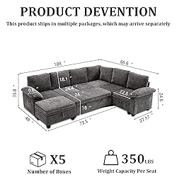Versatile Pull-Out Sleeper Sectional: The pull out sleeper sectional module transforms the modular l shaped sofa from a daily seating area into a comfortable bed for guests.The spacious 85" x 85" design offers hassle-free convenience for guests or naps. Deep Seater & Hidden Storage: The generous seating depth of our sleeper sofa provides a lounging experience, reversible sectional adapts to your space, perfect for relaxing or entertaining. This couch conceals a spacious storage compartment underneath—perfect for stowing children's toys, extra blankets, and other items, keeping your living room sofa area neat and tidy. High Quality Chenille Fabric: This couch for apartment is crafted from plush chenille fabric, free from any rough texture. Its unique fabric also offers stain-resistant and durable properties. Whether it's coffee spills, snack crumbs, or pet marks, simply wipe them away with a damp cloth. It's incredibly family-friendly for households with children and pets. Cloud Luxurious Comfort: Filled with high-density foam, the plush cushions offer lasting support. This comfortable modular sofa cover features thick, plump cushions and deeply sunken seats, providing a cloud-like seating experience that allows you to better enjoy moments of happy tranquility and relax your body and mind. Packaging Instructions: This sectional sofa will be delivered in multiple boxes. Please verify all items are present before assembling the sofa. If any damage or missing parts occur during transit, promptly take photographs and contact our service team.