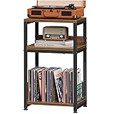 - Simple Trending End Table 3 Tiers Side Table, Record Player Stand with Storage Cabinet, Turntable Stand Record Table Hold Up to 100 Albums, Rustic Brown