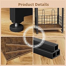 Ample Storage Space: This record stand measures 13.4”L x 11.8”D x 25”H, featuring a spacious tabletop that accommodates turntables of various sizes. The second and third tiers of open shelving hold up to 100 records, providing ample storage space Thoughtful Details: The dense mesh design prevents items from falling out, while the removable U-shaped bottom divider allows you to customize storage space to suit your needs Sturdy and Stylish: Crafted from solid wood and steel, this sofa side table is built to last. Its vintage brown and black color scheme creates an industrial aesthetic, adding a touch of retro charm to your home decor Versatile: It can serve as a compact storage solution for various rooms, such as a children's bookshelf, nightstand, document organizer, bookcase, or side table, meeting your diverse storage needs After-Sales Service: Assembly instructions and necessary tools are included in the package to help you assemble the product with ease. Each side table undergoes comprehensive and rigorous testing. Should you have any questions, please feel free to contact us