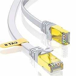 Supports impressive 40 Gbps speed and 2000Hz bandwidth Backward compatible with Cat5, Cat5e, Cat6, Cat6a and Cat7 equipments 50u gold plated contacts for accurate data transfer and maximum corrosion resistance Works with all brands of Ethernet-enabled devices, such as smart TVs, modems, network switches, routers, streaming devices and more Flat cable design is extremely flexible and fits tight spaces such as over/under carpets, doorways, ceilings and corners