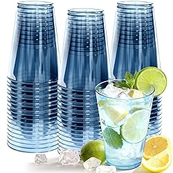 Glowserve 50 Pack Plastic Cups Disposable 12 oz Blue Plastic Cups for Cold Drinks Party, Drinking Cups for Birthdays, Weddings, Christmas and Other Celebrations