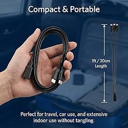 3-in-1 Design: This Type-C female to 3-port Type-C male charger adapter instantly expands 1 Type-C port into 3! Charge 3 Type-C devices simultaneously, solving the problem of insufficient ports Durable Material: The cable shell is made of high-quality PVC material, which is bend-resistant, durable, and has a long service life Charging Only: This splitter is for charging only and does not support any data transfer functions (such as file transfer or network sharing) Safe to Use: Our cablea has a built-in safety switch for comprehensive protection; automatic power-off; energy saving, so you can use it with confidence Compact Size: This short USB-C female to 3-port USB-C male charger adapter is only 1 foot long. Lightweight and portable, it is convenient for outdoor travel and can be widely used both indoors and outdoors