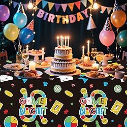 - Family Game Night Table Decorations Includes: Package: 3 Pcs Material: Disposable Size: 86 x 55 inch Our Family Game Night Birthday Party tablecloth decorations offer a magical experience for all ages, transforming ordinary events into extraordinary ones