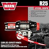Warn R25 Wire Rope Winch – 2,500 lb Pulling Capacity, Equipped with 50’ of 3/16” Steel Rope & Remote-Mounted Rocker Switch - Roller Fairlead for ATV, UTV, Side by Side, and SXS Recovery & Towing