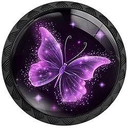 Artinhand 4 Pack Sparkling Purple Butterfly Cabinet Knobs Round Drawer Pulls Purple Butterfly Knob Cupboard Door Handles Hardware for Kitchen Bathroom Cabinets
