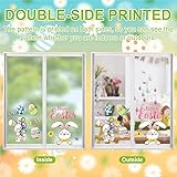 COCHIE Vintage Happy Easter Bunny Egg Window Clings 6 Sheets, Spring Window Decals Stickers for Home Classroom Party Decorations Supplies, Reusable Eggs Flower Green Pink Cling for Windows (Easter)