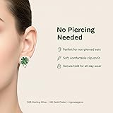 Elegant 4 Leaf Clover Earrings: These exquisite clip-on clover earrings feature a four-leaf silhouette with layered, heart-shaped leaves. Adorned with green cat's eye crystal, they shine like jade and symbolize luck-perfect as four leaf clover jewelry or festive St Patricks Day accessories. Premium Hypoallergenic Material: Crafted with Silver Plated alloy, these shamrock earrings are safe for sensitive skin and won’t cause allergic reactions. The rich green cat's eye stone and golden metal create a luxurious contrast, ideal for daily wear. Luck-Inspired Design & Meaning: Representing true love, health, fame, and wealth, these clover earrings carry positive energy. A rare find like the four-leaf clover, they make meaningful Saint Patrick’s Day accessories or symbolic gifts for attracting good fortune. Versatile for Everyday & Occasions: With a comfortable clip-on mechanism (no piercings needed), these four leaf clover earrings are great for work, dates, or travel. Their elegant design adds a touch of charm to any outfit, from casual to formal. Thoughtful Gift for Any Celebration: This set includes both the elegant clover earrings and a practical dark green storage pouch. An ideal present for Christmas, birthdays, Mother’s Day, or Valentine’s Day. These shamrock earrings are a fashionable gift for loved ones, celebrating special moments with style and lucky symbolism.