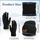 COAUXOG Winter Beanie Hat Scarf Gloves Set Thick Knitted Lined Skull Cap Neck Warmer Scarves Touchscreen Gloves for Men Women (Black)
