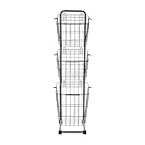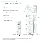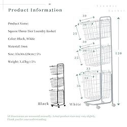 Includes 3 Removable Baskets- Two small baskets and one large basket make sorting laundry fast and convenient. Each basket can also be used independently as a regular storage bin. Large Capacity with Vertical Design- Tall, space-saving structure maximizes storage while minimizing floor usage—perfect for small apartments, laundry rooms, dorms, and more. Mesh-Style Ventilated Frame- The breathable mesh frame helps reduce odors and keeps clothing fresh. Easy to Use & Access- Slanted hanging basket design makes placing or removing items effortless. Convenient Mobility- Equipped with caster wheels for smooth movement. Two wheels include brakes to keep the unit securely in place. Product Name: Square Three-Tier Laundry Basket, Color Options: Black / White, Material: Iron, Size: 35 × 36 × 120 cm (±5%), Weight: 3.47 kg (±5%)