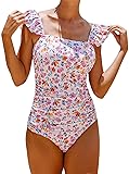 Fabric: This tummy control swimsuits for women is crafted from smooth and stretchy fabric, super soft and comfortable Features: One piece bathing suit for women, square neckline, colorful floral print, sleeveless, adjustable shoulder straps, sweet and elegant style, cute ruffle swimsuits for women, ruched swimsuits for women, super flattering Design: This modest swimsuits for women featuring ruched waist, removable padded cups, stylish ruffled sleeve and slimming silhouette, while the moderate back coverage provides a secure and confident fit Occasions: The floral swimsuits for women is perfect for summer, beach, pool party, tropical vacation, jet skiing, honeymoon, swimming, cruise, resort, family beach trips, spa and other water activities Note: To find your best fit, we recommend using the size chart before ordering; hand wash or low temperature for machine wash is recommended