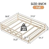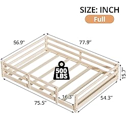- Product SpecificationThis solid pine Montessori floor bed sits just 15.7" off the ground, letting kids climb in and out safely while building confidence. Four full-height, toy-catching rails create a secure, pinch-free nook that doubles as a play fort—no box spring needed. Tool-free assembly means bedtime independence starts today.Product InformationMain Color:Natural,Blue Gray,CoffeeMain Material:WoodBed Size:FullProduct DimensionsAssembled Length (in.):77.9Assembled Width (in.):56.9Assembled Height (in.):15.7Kind RemindManual measurement has been used, there may be some reasonable error.Product pictures are for reference only. Real product's color may be a little different from the image due to the lighting or monitor's display.If there is any damage, missing parts, defect with the item you received, just don't worry. You can reach us for support.Due to the large size of the product and inconvenient transportation, once the order has been shipped, we only accept the return requests due to quality issues. Hope you can understand.