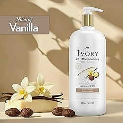 - Experience 24-hour moisturization with Ivory Hand & Body Lotion, the perfect blend of nourishment and care for hydrated skin all day long. Formulated with a nourishing shea butter blend, this lotion repairs extra dry skin for long lasting moisture. Its fast-absorbing, lightweight formula ensures your skin feels soft and smooth to the touch without leaving a greasy residue, making it perfect for daily use. Enjoy the gentle, comforting notes of vanilla that soothes the senses with every use. Give your skin the peace of mind and loving care it deserves with a formula that’s free from heavy perfumes, parabens and phthalates, dermatologist tested and never tested on animals. With over 140 years of family trust, Ivory is dedicated to delivering simple, effective products that care for both your skin and the environment. Choose Ivory Hand & Body Lotion for a nourishing experience that combines tradition, innovation, and gentle care for your skin.