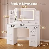 - Furmax always works at the innovation and development of home furniture and office products, aiming to be attuned to the demands and values of every customer with better items and service. If you are searching for satisfying comfortable furniture, it would be a great choice to have a look of our store. The large size and storage of the vanity table with clear mirror and three color adjustable LED light create the ideal makeup environment for you to create a ideal makeup look. Features: Wider desktop makeup desk with 7 drawers and 6 open storage shelves helps you categorize better. three-color adjustable LED lights can adjust the lighting effect you want. Power outlets to make your make-up more convenient. Specifications of Vanity Desk: . Product Dimensions: 15.5(D) x 43.3(W) x 53.9(H) Inches Color: White&Black Style: Modern Material: Wood Board