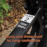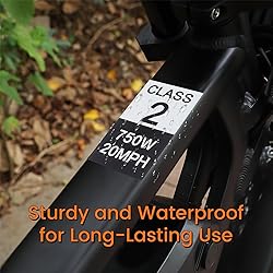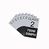 Class 2 Ebike Sticker: Clearly displays 750W power rating and 20MPH maximum speed limit for proper e-bike classification and identification Durable All-Weather Material: Made from UV-resistant, scratch-proof vinyl with waterproof lamination to maintain clarity and legibility through sun, rain, and daily use Easy Peel & Stick Setup: No tools needed—just apply the self-adhesive labels to any clean, smooth eBike frame for quick and secure placement Multi-Pack for Added Value: Includes 8 identical high-visibility labels, ideal for multiple eBikes, replacement use, or clear identification on different parts of your bike Multi functional and reliable design: suitable for indoor and outdoor electric bicycles, easy to use