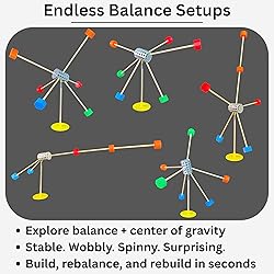 DISCOVER THE SCIENCE OF BALANCE THROUGH PLAY — Build gravity-defying structures that seem impossible until they’re perfectly balanced. Each setup reveals real-world physics concepts like mass, torque, and center of gravity—hands-on and unforgettable. MODULAR DESIGN, LIMITLESS EXPERIMENTS — Includes a geometric core, 7 rods, 8 uniquely shaped and weighted pieces, a base, balance point, and receptacle. Every piece connects in multiple ways, letting kids and adults explore balance, symmetry, and creativity without limits. STEM LEARNING THAT FEELS LIKE MAGIC — Corbie transforms abstract science into tactile discovery. One small shift can change everything, turning prediction and testing into laughter and “whoa!” moments of wonder. TEACHER-CREATED AND CLASSROOM-READY — Designed by an educator to spark curiosity in real classrooms. Ideal for STEM stations, science centers, and inquiry lessons that encourage problem-solving and perseverance through play. A FIDGET, A TOY, A SCIENCE KIT IN ONE — Relaxing to tinker with, rewarding to master, and endlessly replayable. For curious kids, creative teachers, and anyone who loves to see how the world finds balance.