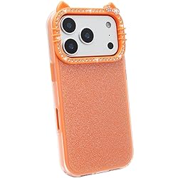 MC Fashion for iPhone 17 Pro Case, Glitter & Rhinestone Cartoon Cat Ears Solid Color Case for Girls Women (Orange)