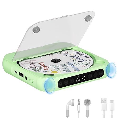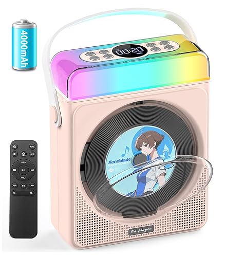 【Modern Nostalgia – All Your Music, Any Way You Want】Bring back classic CDs and mix them with modern tech! This portable CD player with Bluetooth supports CD, CD-R/RW, MP3, and WMA. Stream wirelessly or play directly via USB, TF card, or AUX. A must-have cd player with speakers for home or travel. 【Mood Lights That Dance with Your Music】Light up your vibe with this portable CD player with speakers and RGB lights! Choose from 3 modes: Dynamic Multi-Color (rainbow cycling), Breathing Light (soft fade in/out), or Solid Color (tap to switch hues). Perfect for kids, bedrooms, or parties—your music, your glow. 【Bluetooth Transmit & Receive – Play Your Way】Enjoy total flexibility with this portable CD player with Bluetooth. In Transmit Mode, connect wireless headphones for private listening. In Receive Mode, turn this CD player with speakers into a Bluetooth speaker for your phone or laptop. Perfect portable cd players for home. 10m range + remote control = hands-free convenience. 【Long-Lasting Power for Every Occasion】This portable Bluetooth CD player packs a 4000mAh rechargeable battery for up to 11 hours of playtime. Perfect for backyard BBQs, camping trips, or chill nights at home. The rechargeable cd player portable charges via USB-C (cable included). 【Smart Features, Easy Control】Customize sound with EQ, set a 10–90 min sleep timer, or loop songs for study or sleep. Our personal cd players are simple, fun, and durable—perfect for kids, learning, or relaxation. A great Bluetooth CD player for home or travel that makes music easy anytime.