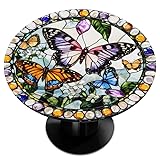 Pardick Round Fitted Tablecloth with Elastic Edged Butterfly Glass Painting Outdoor Tablecloth Indoor Round Table Cover Waterproof Wipeable Table Cloth for Party Picnic Camping Dinner Wedding 45"-50"
