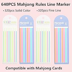Fooind Mahjong Card Accessories Set: Including 320 solid color stickers and 320 fine line stickers.This mahjong card rule finder is perfect for mahjong game novices and strategy gamers to understand Mahjong play and memorize it quickly. And, 2 different style can fit your needs as using Lightweight Mahjong Accessories: This mahjong line reader help player stay focused on gameplay rather than memorization, super fit for beginner. Besides, Smaller design than traditional detectors, it won't attract the attention of your opponents, thus completing your gaming experience, and it's easy to carry with your mahjong set High-Quality Transparent Material: Made of good quality fluorescent transparent flexible PET material, these stickers can paste and remove easily without residue.Reusable for multiple sessions, they stand up to frequent use in both casual play and tournaments Multiple Usage Mahjong Line Reader: This no sticky residue transparent writable highlighter tape mahjong accessory is not limited to use in mahjong game parties, it can also be used as a bookmark for notes, reader content finder Compatible with Most Mahjong Card Readers: Solid color and line terms: 5.5in/14cm x 0.3in/0.5cm, Compatible with all sizes of standard mahjong cards and mahjong tiles