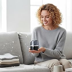 Powerful Defuzzing Action: Equipped with a high-speed motor and upgraded stainless blades this lint remover delivers strong consistent performance helping you refresh clothing upholstery and blankets by efficiently removing pills fuzz and lint buildup Large Capacity Storage: Designed with an extended lint container this unit collects more fabric in minimizing cleanups and allowing longer uninterrupted ideal for sweaters bedsheets couches wool coats and everyday garments Gentle Fabric Protection: Built to safely treat delicate fibers its protective mesh cover prevents snagging while maintaining smooth even contact making it suitable for wool cashmere cotton knitwear socks scarves and other soft materials Portable Travel Convenience: Lightweight and compact at 3.46 x 2.83 inches this handheld lint remover fits easily in handbags backpacks or car compartments making it perfect for on-the- clothing care during travel work trips and daily use Easy Design: Features a comfortable grip intuitive and quick disassembly for emptying lint ensuring a simple user experience for adults seniors and teens wanting a fast effective and low-maintenance garment care tool