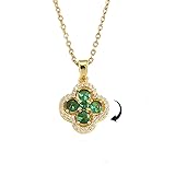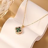 Dainty Rotating Four Leaf Clover Necklace for Women Gold-Tone Sparkly Imitation CZ Lucky Flower Pendant Necklaces Adjustable Chain Fashion Relief Stress Good Luck Jewelry for St. Patrick's Day 15.7+2"