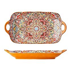 High Quality & Exquisite Bohemian Style: The 12" Inch Rectangular Trays Is Made Of High Quality Clay By High Temperature Tings Firing, Safe And Nontoxic, Without Harm To Your Health, Through An Under Glaze Process, Bright And Colorful, The Floral Patterns On It Will Not Fade; Design: Serving Plates Beautiful Painted Flowers Design, Which Is Painted With Countless Vivid Flowers That You Will Love And Enjoy Your Baking Time, This Ceramic Serving Platters With Handles Would Be A Charming Decoration In Your Dining Table And Kitchen. Entertain With Elegance: Ceramic Platters For Serving Food Party, Designed To Elevate Every Dining Experience, This Generously Sized Platter Effortlessly Transitions From Casual Brunches To Formal Dinners -Vibrant Fruit Arrangements, Garden-Fresh Salads, Decadent Cakes, And Artfully Arranged Appetizers Versatile Use: Perfect For Group Meals, This Platter Is Ideal For Serving Roasted Chicken, Ham, Fruit Platters, Salads, Cakes, And Appetizers, Making Rectangular Serving Platter A Versatile Choice For Any Occasion Thoughtful Gift Choice: Whether For Housewarmings, Birthdays, Or Weddings, Our Colorful Plates Make For A Thoughtful And Memorable Present That Will Be Cherished For Years To Come. ceramic serving dishes serving platter ceramic ceramic platter serving dishes for entertaining ceramic serving platter serving platter serving dish set boho dinnerware set boho dish set boho dishes serving platters ceramic ceramic platters for serving food